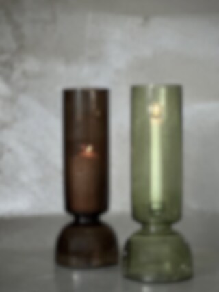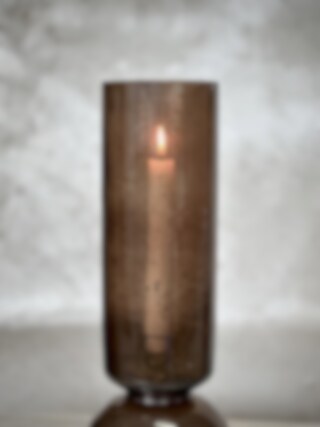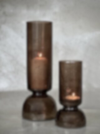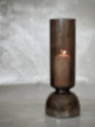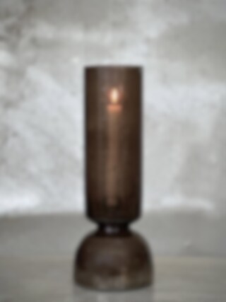 BONDO large glass vase / candle holder, smoke colour with stone finish