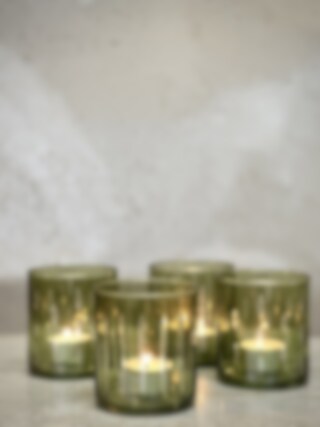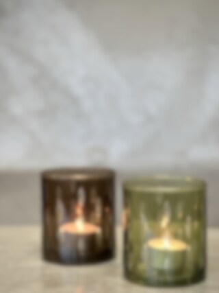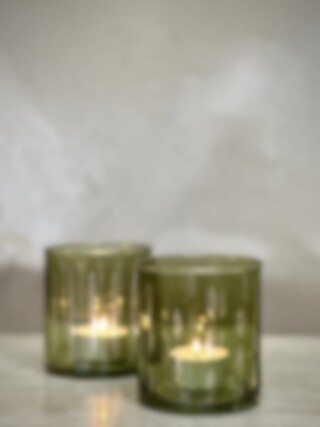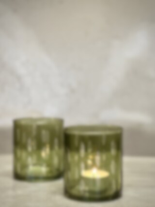 HOLLO tea light candle holder Light green with cutting Ø 8,5 x H 9,5 cm