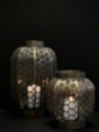 Our JING large lantern has a contemporary oriental look. Available in two sizes and comes in a unique vintage brass - gold finishing Made of metal
