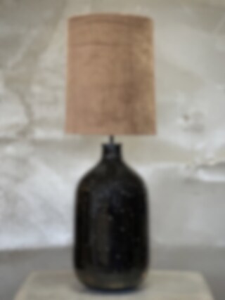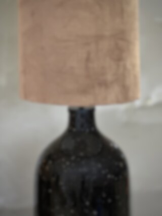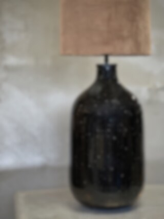 LAXI table lamp in black bubble glass with beige velvet shade.