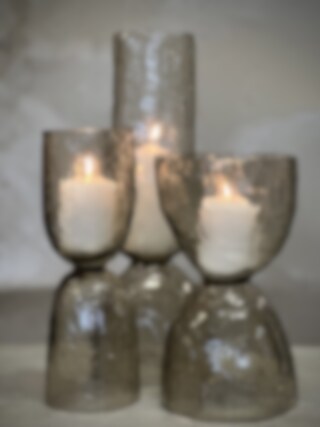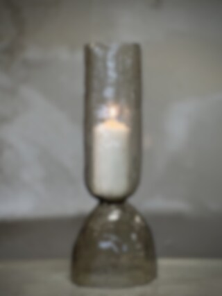 MADU glass vase / candle holder in light smoke hammered glass Ø 16,5 x H 44 cm