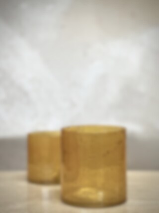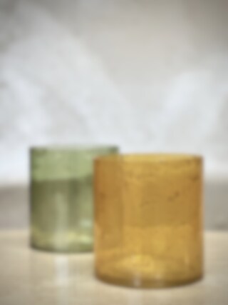 MARI large tea light candle holder Opaque yellow with stone finish glass Ø 12 x H 13 cm