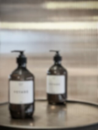 VOYAGE is a scented liquid hand and body soap with a woody touch Filled in a smoke grey plastic bottle with pump Developed exclusively for NOORI OBJECTS